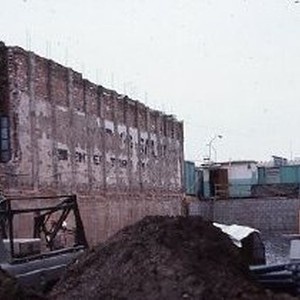 Old Sacramento. View of the Pacific Stables building on the corner of Second and L Streets. This view is of the site during reconstruction.