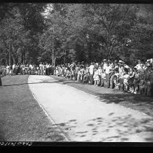 4/22/53 - Youngster drowns in Southside Lake. Large crowd of onlookers behind rope barricade. 4 of 6