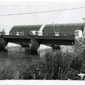 Channel gates have been raised in a water channel in Locke, California.