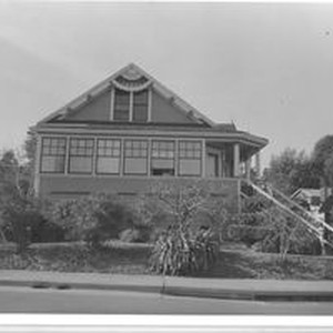 Photo, black and white: Sebastopol house at 702 Litchfield Avenue a Queen Anne / Colonial Revival built in 1905 in the Wightman Addition. House photographed in 1993 by Evelyn McClure for her book "Sebastopol, California : History, Homes and People."
