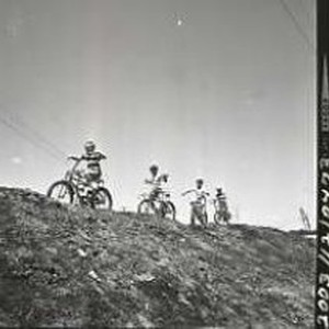 ca. 1950 "Summer Fun" Kids riding bikes on crest of hill. 3 of 3
