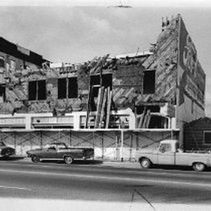 View of the demolition of the Moose Lodge building at 22nd and Broadway in Sacramento originally built in 1927.