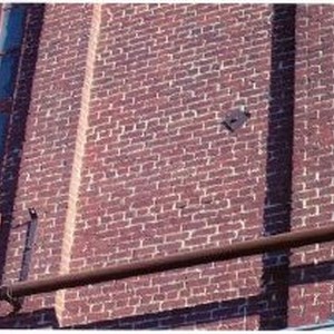 Zoomed in view of brick on north side of erection shop at Southern Pacific Railyard. This end of building constructed in 1869.