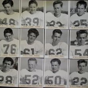 Photo--Black and white: Analy High School Football fall1952. Individual photos: Top row: Hayes, Ted (48) Caddel, Jimmy (39) Perdue, Troy (35) Schaltz, Berton (25). Middle: Woodbury, Chuck (76) Ducley, Dick (61) Bell, Bill (62) Allan, Bartlett (54). Bottom: Ameral, Don (28) Van der Star, Ralph (52) Garloff, Bud (50) Middough, Wayne (22).