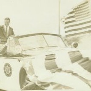 Wrong Way Carrigan sitting in a covertible Californina Highway Patrol car and waving.