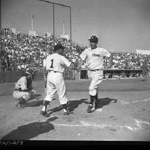 Baseball - Solon opener - Sacto nips Stars 4 to 3 - Runner crossing home plate - 4/5/1955 2 of 12