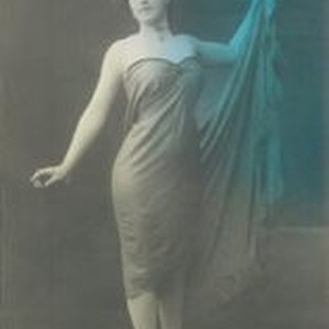 Postcard--black and white, photo: women in Victorian fashion. Caption: "Mlle Lorraine"