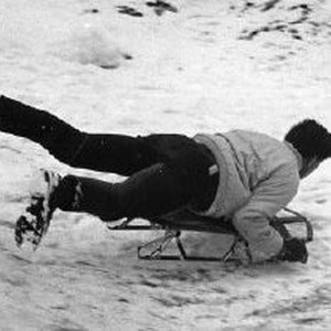 The photo caption printed in the Sacramento Bee on March 24, 1964 states: "The roadway at the top of Ski Run Boulevard in Al Tahoe, Lake Tahoe, is a popular place for sled riders. The incline is steep enough so that some of the older and heavier riders are bounced off their sleds on the bumps. This rider pictured at the moment he descended after bouncing over a bump, struck his chin on the handle and broke the sled, bruising his chin."