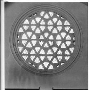 Interior view of the circular rose windows of Westminster Presbyterian Church on the southeast corner of 13th and N Streets.