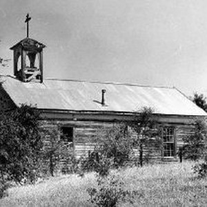 The photo caption printed in the Sacramento Bee February 7, 1969 reads: "Three miles northeast of the settlement of French Corral is St. Columncille's Catholic Church, now unused and gradually falling down. It was built in 1862 to be headquarters for the Bridgeport Union Guard and converted to a church in 1869."