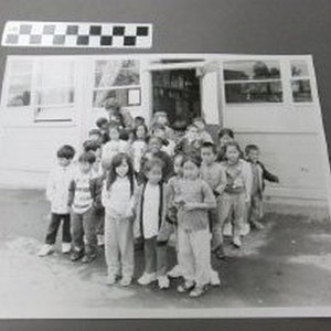 Two black and white photographs of first grade class in 1997 at Oak Ridge Elementary School. Hmong, Mien students.