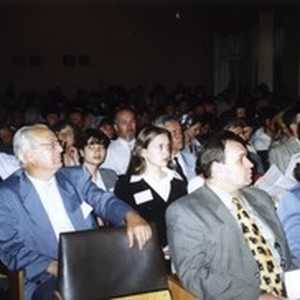 Photograph of a large group of people in the audience at the Sixth Congress of the Churches of Christians of Evangelical Faith, 2000. [Description English/roman)] Фотография большая группа людей в аудитории на VI Съезд Церквей Христиан Евангельской Веры, 2000. [Description (original non-English/roman language/script)]