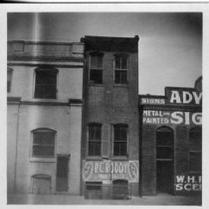 View shows supports for Pioneer Hall while construction is underway for Capital National Bank Building on 7th Street. This view shows the rear of Pioneer Hall.