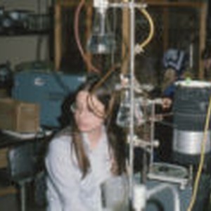 Pam Pope and Cheryl Anderson conducting an experiment with leech muscles in Zoology 168 class.