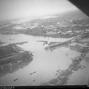 Flood - Yuba, Marysville, Sac. (Aerial) Washed out bridge - 12/25/55