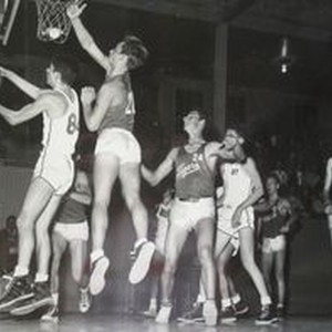 Photo--Black and white: Analy High School basketball B team of 1949-50. Analy vs San Rafael. Analy Tigers 30--San Rafael 23.