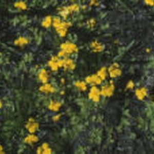 Small yellow flowers grow on a green bush in South Cove at Guest Lake Camp, approximate elevation of 10,000 feet.