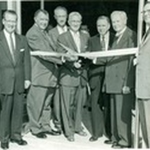 Ribbon cutting center, Los Angeles Department of Water and Power service center, Mr. Whitsett on the right.