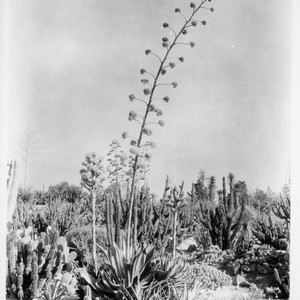 This agave plant has a tall, leaning flower stem (inflorescence). The label that accompanies this photo in the album reads "Agave wildingi, N.A. - 92."