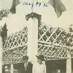 Harvey Barnett and Vivian Buell lean against arbor at Southside Park.