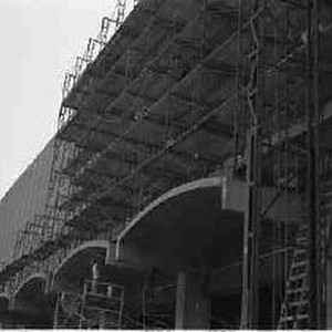 Scaffolding on Macy's building during construction.
