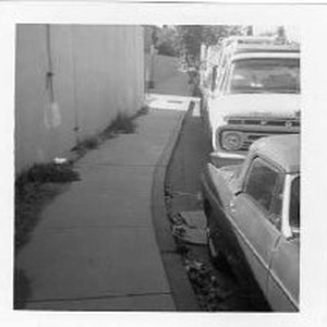 Street scene showing the Sacramento County Hospital's emergency exit along Stockton Blvd and also showing traffic flow patterns and road improvements.
