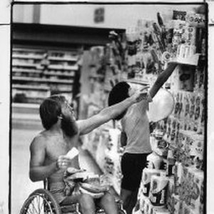 Gene Howard, a wheelchair athlete who competed in marathons, played tennis, and taught sports to handicapped children. He is shown shopping in a supermarket with his son Eric