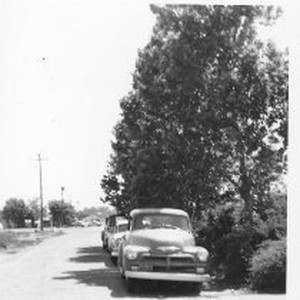 View of Balsam St. "behind P.O." (probably Post Office). Road is unpaved.