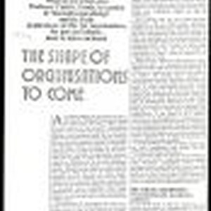 Charles Handy article exploring the changing organization of work. Specifically, Handy tackles the phenomenon of discontinuous change, that is, unanticipated changes that organizations are not prepared to meet. He begins by listing and describing assumptions about management that are ineffective, namely, that concentration alongside specialization results in efficiency, that labour is a cost, and that hierarchy is natural. He then proposes new terms that are more useful and effective, such as paying personnel fees and not wages, turning labour into an asset, and favoring a community-based, rather than an institution-based, approach to organizations. The positive implications for instituting these new approaches, according to Handy, are that workers would have flexi-lives, the marginalization of certain types of work priced out of existence, such as 'dirty jobs,' and acceptance of a by-pass theory of change, which would come from new institutions bypassing their dated predecessors.