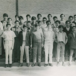 Joe Ramirez (front row, far right) and the Stevenson Junior High School 8th grade class (the school was not coed in 1967).