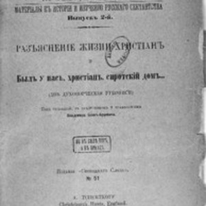 Raz'yasneniye zhizni Khristian' i byl' u nas', Khristian' sirotskiy dom'... = Clarification of life Christians and profit from them, Christian orphanage church..., 1901 Разъясненіе жизни Христіань и быль у насъ, Христіань сиротскій домъ..., 1901