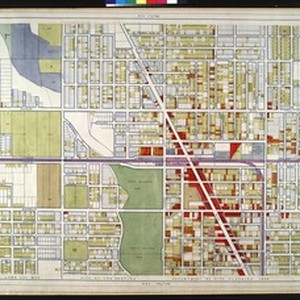 WPA Land use survey map for the City of Los Angeles, book 4 (Van Nuys District to Garvanza District), sheet 10. Includes: [Title page and] legend [for Book] no. IV Composite index to Land use map books [for Book 4]. Land use survey - City of Los Angeles. Department of City Planning. These maps were prepared with the assistance of the Works Progress Administration project no. 665-07-G-226 through 1939 to 1940. The land use data contained herein was compiled from a survey made with the assistance of the Civil Works Administration project no. 642, State Emergency Relief Administration project nos. 1-F2-318 and 1-F2-318A and Works Progress Administration project nos. 65-3-4377, 1101-2011 and 465-03-3-106. This survey functioned from Dec. 18, 1933 to May 8, 1939 and covers approximately 460 square miles within the boundary of the City of Los Angeles. It includes 347 colored drawings bound in 10 volumes of which this is no. IV. The land use survey was supervised by the Zoning Engineer. The land use maps were supervised by the Illustrative Planning Engineer for the Sponsoring Department.