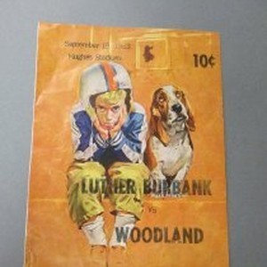 Program, Luther Burbank vs. Woodland football game, September 19, 1963 at Hughes Stadium. One of two.