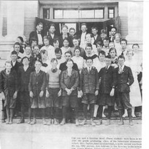 Photo--black and white newspaper clipping: Sebastopol elementary School 8th grade class of 1918. It was located on Bodega Avenue where Parkside School is currently situated (7450 Bodega Avenue)