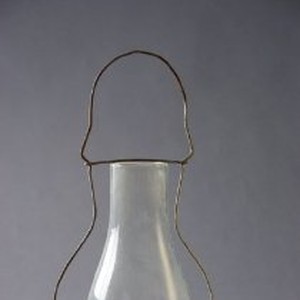 Tin base with clear glass chimney and wire bale handle. Manufactured by "The Daisy Candle Lantern Pat. July 30, 1895".