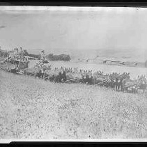 Copy print of an early harvesting scene from Pendleton, Oregon taken August 11, 1916.