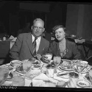 4/16/53 - Senator Earl Desmond & Corinne Griffith at dinner table.