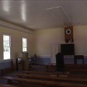 Old Sacramento. View of the Old School House Museum on the west side of Front at L Streets. This view shows the interior space