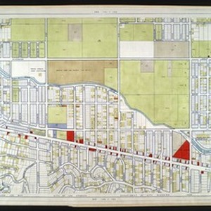 WPA Land use survey map for the City of Los Angeles, book 5 (Santa Monica Mountains from Girard to Van Nuys District), sheet 18. Includes: [Title page and] legend [for Book] no. V Composite index to Land use map books [for Book 5] Index to Book no. 5. Land use survey - City of Los Angeles. Department of City Planning. These maps were prepared with the assistance of the Works Progress Administration project no. 665-07-G-226 through 1939 to 1940. The land use data contained herein was compiled from a survey made with the assistance of the Civil Works Administration project no. 642, State Emergency Relief Administration project nos. 1-F2-318 and 1-F2-318A and Works Progress Administration project nos. 65-3-4377, 1101-2011 and 465-03-3-106. This survey functioned from Dec. 18, 1933 to May 8, 1939 and covers approximately 460 square miles within the boundary of the City of Los Angeles. It includes 347 colored drawings bound in 10 volumes of which this is no. V. The land use survey was supervised by the Zoning Engineer. The land use maps were supervised by the Illustrative Planning Engineer for the Sponsoring Department.