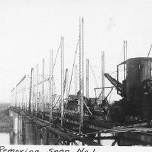 "Removing span No.1" of old bridge.