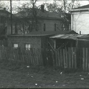 Views of redevelopment sites, renderings, and table models for the proposed Redevelopment District. Includes maps and site plans. This view is of a typical alley in the district