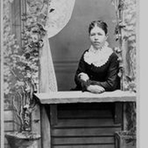 Photo--black and white: Nancy Eleanor (Nannie) Sullivan Crabtree in a posed portrait photo by Rea of Santa Rosa. Nancy (1859-1911) was daughter of Isaac W. (1807-1891) and Mary "Polly" (Gilliam)(1833-1885) Sullivan early pioneers of Sonoma County.