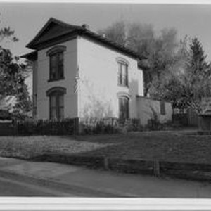 Photo, black and white: Sebastopol house at 6851 Fannen Avenue a Renaissance Revival built in 1905 in the Walker Addition. House photographed in 1993 by Evelyn McClure for her book "Sebastopol, California : History, Homes and People."