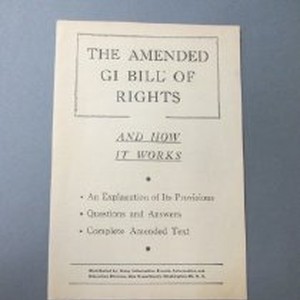 Pamphlet, "The Amended GI Bill of Rights." Published by the Army Information Branch, Washington D. C, 1945. 16 pages, stapled.