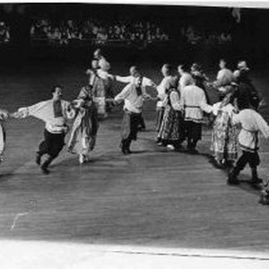 A folk dance group performs the Macedonian "Lesnoto Oro" during the Camellia Folk Dance Festival and Pageant at the Memorial Auditorium.