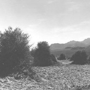 Large clumps of sage brush dominate the lower half of this desert scape with mountains in the middle distance (right).