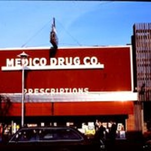 Slides, color transparency: The Medico Drug Co. Store on North Main Street. 1977.