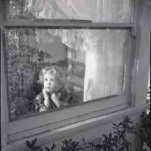 1952 - Little girl looking out of window, Christmas tree beside her. (Looking for Santa?)