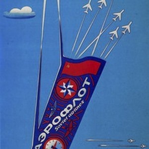 Soviet poster advertising Aeroflot, a major Soviet airline. Caption reads, "Аэрофлот. Soviet airlines / Aeroflot. Soviet airlines". [Description English/roman)]