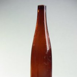 A plain amber wine bottle. No bottler's label or mark. The top of the bottle has been cut.